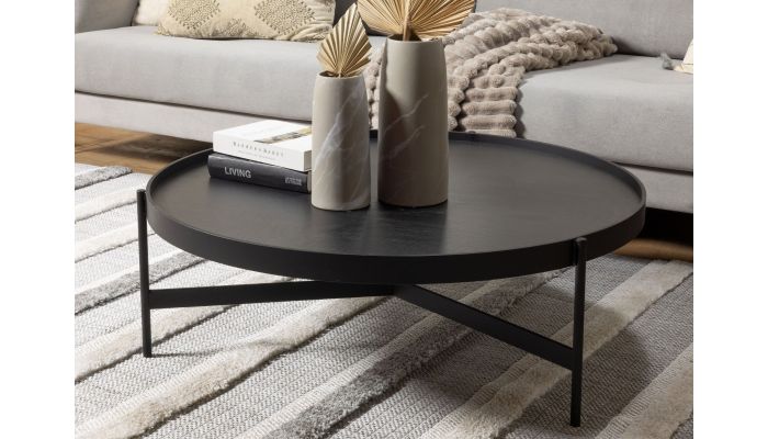 שולחן סלון עגול שחור קוטר 102 ס"מ דגם ראונד